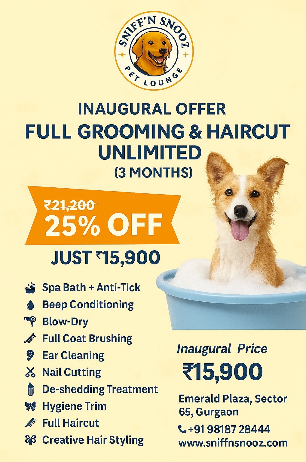 Take advantage of ongoing pet grooming offers at Sniff n Snooz in Gurgaon, Haryana and keep your pet fresh, clean, and healthy with ease.