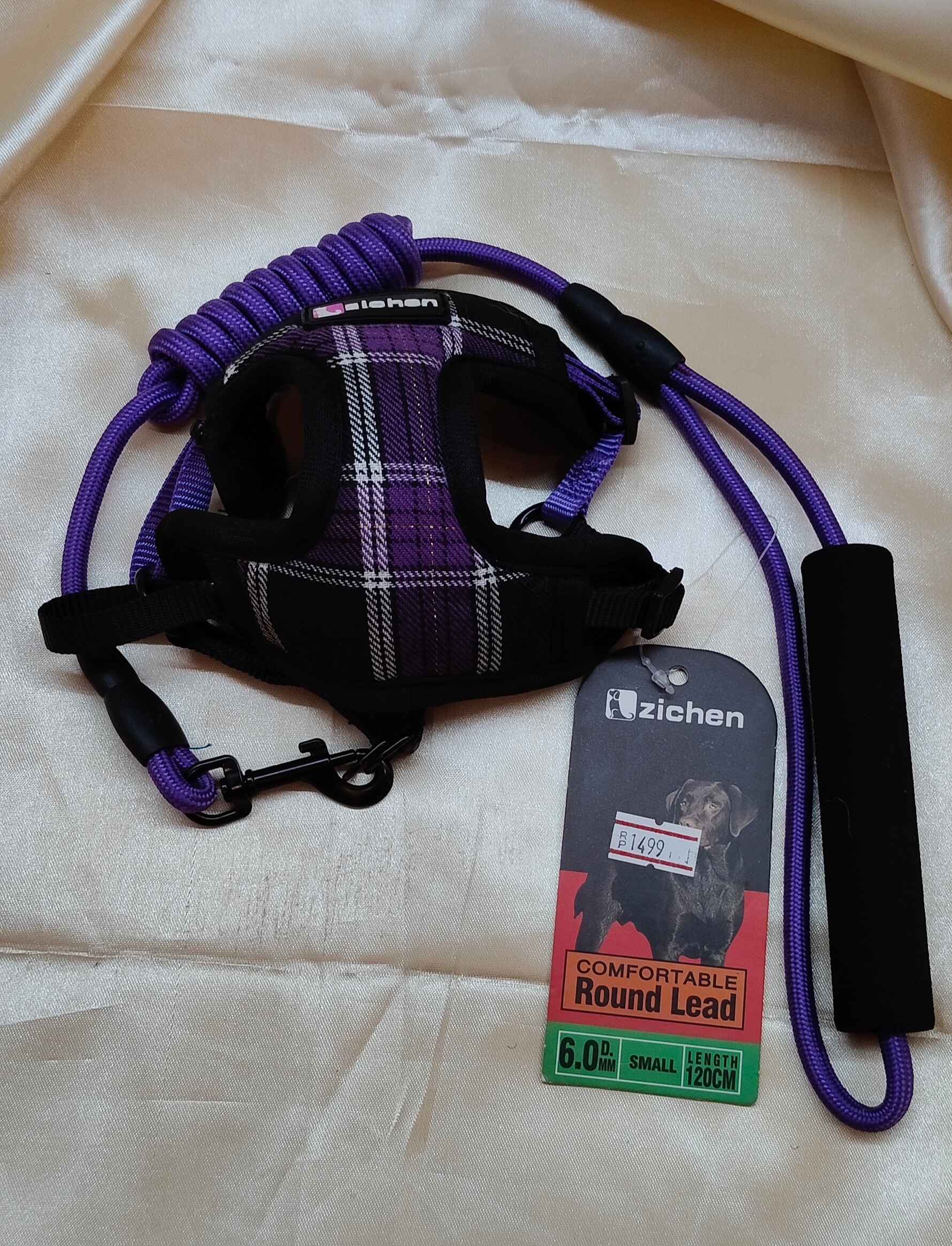 The Zichen Comfortable Round Lead & Harness Set combines classic style with functional comfort. The harness features a red-and-black plaid design with soft padding for a gentle, secure fit that reduces pulling and prevents choking. Paired with a matching red rope-style leash featuring a cushioned black foam handle for a firm, non-slip grip. The lead is durable, tangle-resistant, and designed for everyday walks. This set is ideal for small dogs, offering both security and fashion in one package.